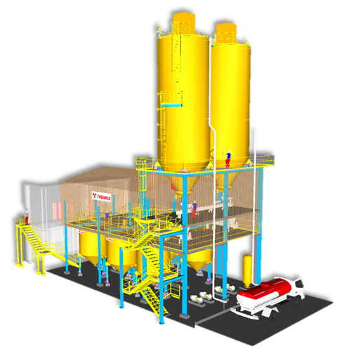 Sistemas de Alimentação e Dosagem: silos e alimentadores dosadores que controlam com precisão a quantidade de cal virgem e água inserida na reação;